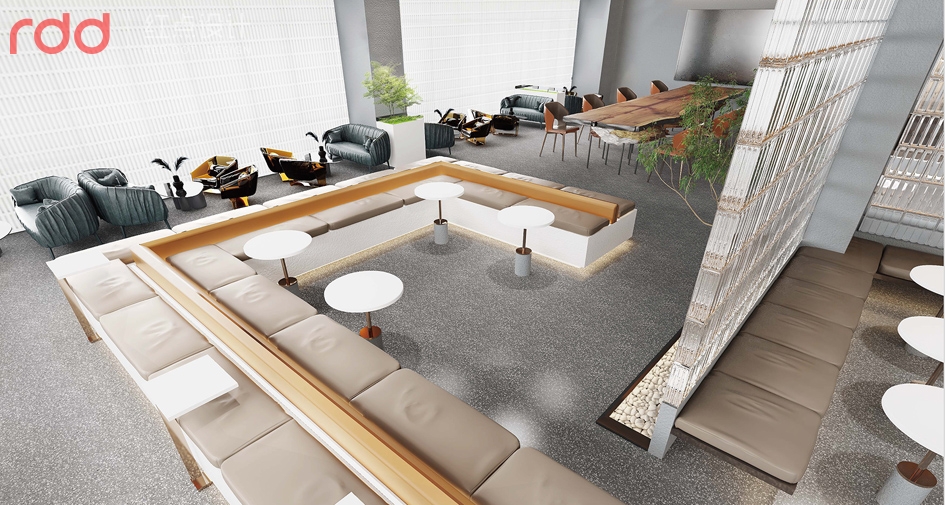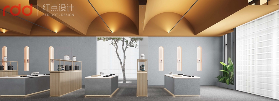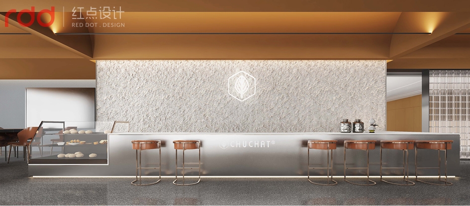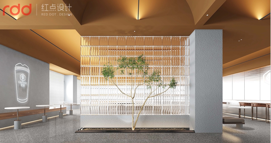 進入公司放棄了傳統(tǒng)公司前臺理念,以水吧和洽談區(qū)為一體,背后的文化墻體現(xiàn)了初茶的LOGO,配合企業(yè)VI,以延續(xù)“初茶”品牌現(xiàn)代茶飲文化,打造體驗感展廳,初茶初衷,只做茶臻品。因此展廳吊頂大面積使用金色,讓整個空間透露出高貴,雅致且簡約潮流的氣息。展廳造獨立玻璃磚端景,令洽談區(qū)的獨立性,展廳的穿透性大氣又時尚,又能讓人聯(lián)想到人與自然的結合,天人合一的思想由然而已生。