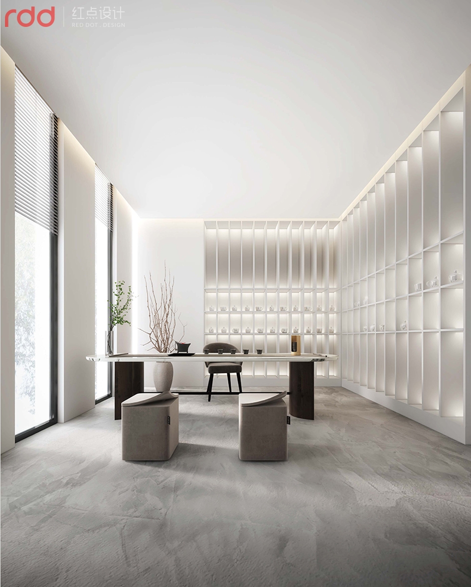 設計說明:初茶廣州總部辦公空間由紅點設計團隊打造。將現(xiàn)代、極簡、美學等元素融入空間設計,是初茶的風格,而這次辦公室的設計,除了延續(xù)以往的風格之外,還加入了些中式的元素。