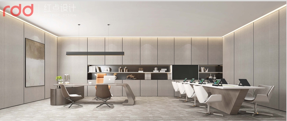 高層辦公室空間設計裝修極力凸顯領導者追求質樸典雅之心境,企業(yè)的品牌榮譽形象也在這些空間得以全面體現(xiàn)。