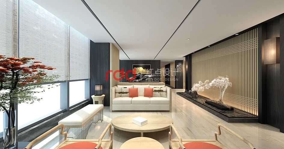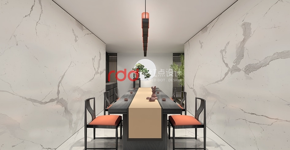相對(duì)于西方來(lái)說(shuō),中國(guó)傳統(tǒng)文化更注重“空”,注重虛空和留白的營(yíng)造。因此,設(shè)計(jì)師在墻面的設(shè)計(jì)及裝飾上并沒(méi)有重復(fù)的運(yùn)用材質(zhì)和藝術(shù)裝置堆滿整個(gè)空間。讓整面墻干凈整潔甚至留白也不失為一個(gè)明智之舉。