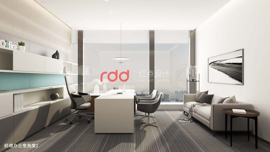 由于業(yè)主喜歡偏冷的灰調(diào)和現(xiàn)代設(shè)計崇尚“Less is more”的理念。開放辦公區(qū),經(jīng)理室等空間都是以簡單低調(diào)的現(xiàn)代風(fēng)格為主。