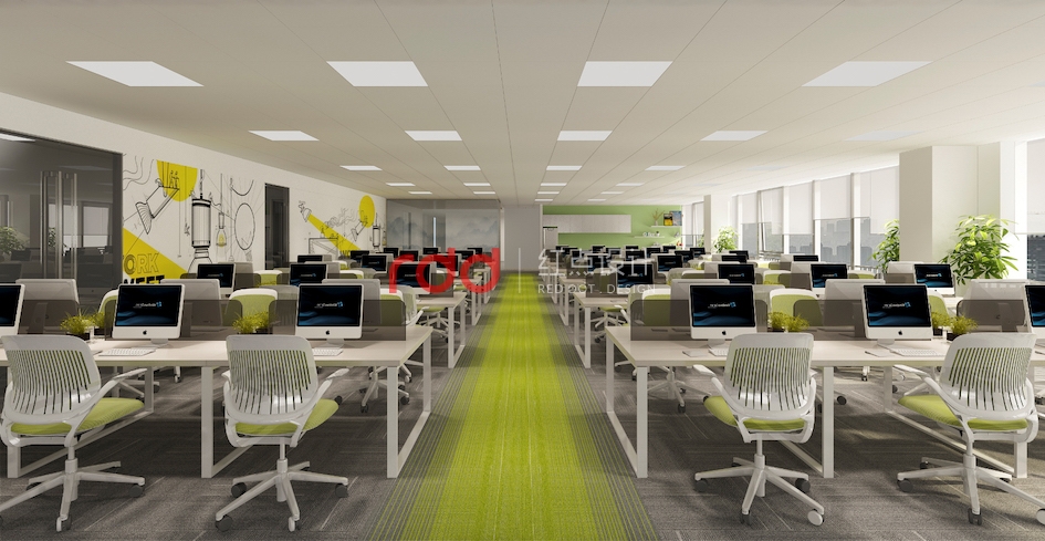 進入辦公區(qū),一股綠色的新鮮氣息鋪面而來。兩邊的墻繪更是活躍整個空間的氣氛。讓一天疲憊的工作得到放松。