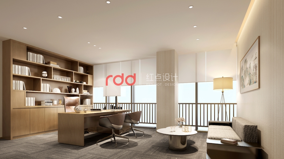 根據(jù)客戶的喜好和設(shè)計上對稱平衡的原則,董事長和總經(jīng)理辦公室沿用了前臺大堂的木飾面。