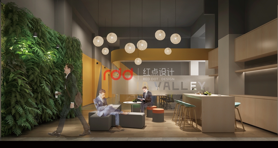 前臺(tái)休閑區(qū)是一個(gè)企業(yè)靈魂的體現(xiàn),也是靈感迸發(fā)的地方。年輕活躍的氛圍是最好的藥引,因此在色彩的設(shè)計(jì)上,設(shè)計(jì)師大膽運(yùn)用橙黃色,這一色調(diào)一致延伸到其他空間。