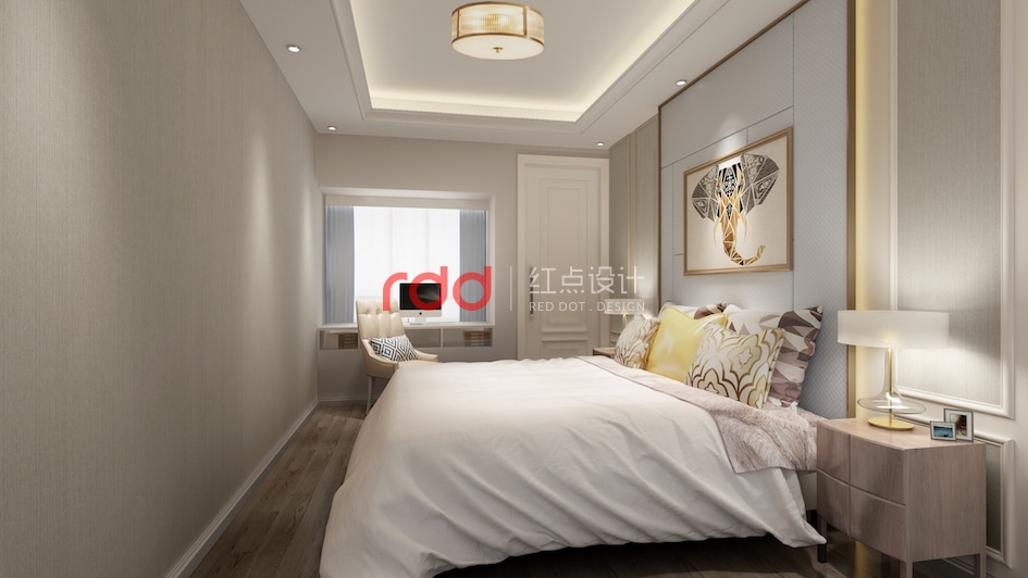在簡單的住宅空間里,紅點空間設(shè)計的設(shè)計師通過色彩、元素和材質(zhì)的運用將輕奢的簡歐打造得淋漓盡致。