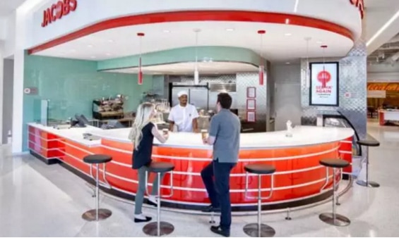 就像是很多科技巨頭的做法一樣,新的可口可樂(lè)總部看起來(lái)就像是大學(xué)校園。一項(xiàng)叫做“主街體驗(yàn)”的設(shè)計(jì)是改造的精彩之處,它將園區(qū)內(nèi)的六棟建筑宮的底層全部打通,形成了一個(gè)完整的公共空間。改造之后的園區(qū)囊括了診所、藥店、便利店、健身中心、自行車(chē)存放處、干洗店、商業(yè)街,員工們不必離開(kāi)園區(qū)即可滿(mǎn)足日常需求。