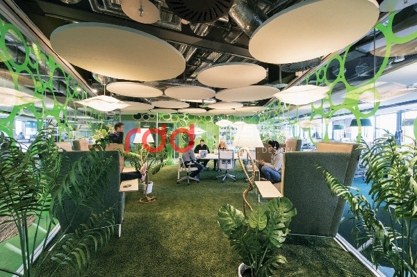 主題設(shè)計(jì)讓空間化身成百變樂園 這棟新辦公室里,規(guī)劃了許多正式與非正式的會議區(qū),加入了不同的主題設(shè)計(jì),宛如百變樂園一般。像是叢林穴洞以及異國風(fēng)情風(fēng)格等,讓員工能在最放松、自在的環(huán)境下,激發(fā)平日苦思不著的創(chuàng)意與靈感。