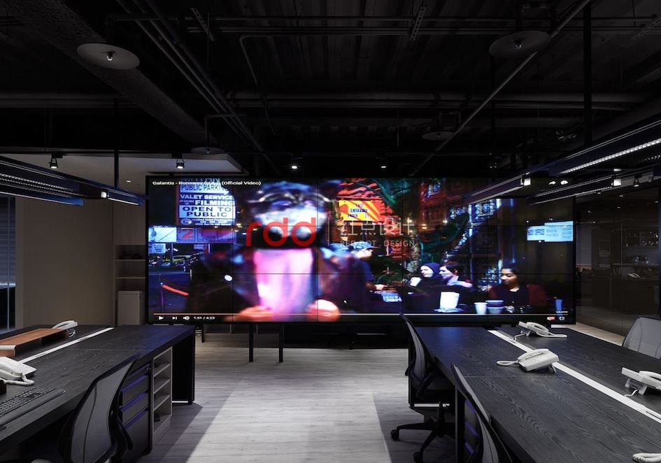 2米高的大型電視墻,可協(xié)助的工程師關(guān)注數(shù)據(jù),在經(jīng)過(guò)機(jī)密的計(jì)算后,考量承重及散熱,使用上下懸空的鐵件,輕量化視覺(jué)上的感受,同時(shí)讓空間氣流及感受均更為留通。