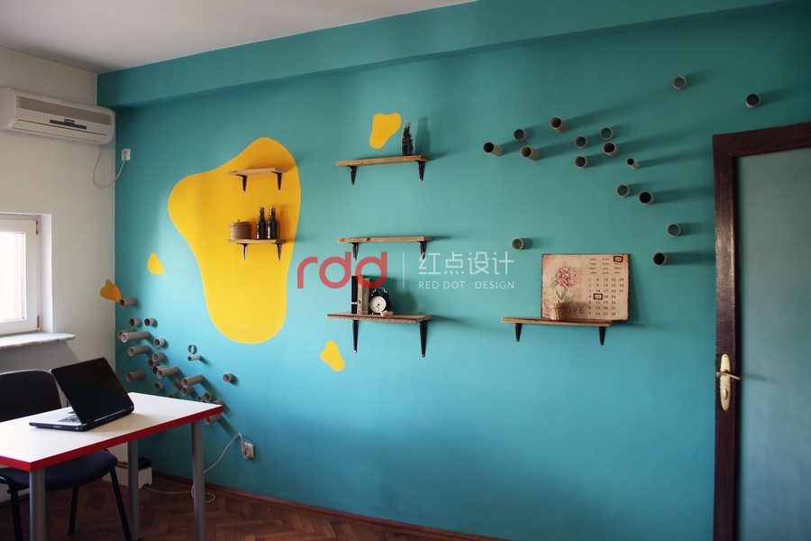 Archinteriors 設(shè)計(jì)公司的莫妮卡?柯?tīng)柖艃?nèi)亞努 (Monica Corduneanu) 最近寄給我們一組照片,是她最近的新作品, Webshake 工作室。根據(jù)設(shè)計(jì)師的想法,希望開(kāi)發(fā)一個(gè)獨(dú)特的個(gè)性化空間,剛好客戶(hù)也是期望能有一個(gè)有趣和豐富的設(shè)計(jì)風(fēng)格。這就是為什么,我們用使用兩種強(qiáng)烈的色彩,青綠色和鮮黃色,利用紅色作為點(diǎn)綴。墻壁上的黃色斑點(diǎn)是公司的 logo ,我們也把這個(gè)刻在桌子上。這個(gè)空間規(guī)畫(huà)成三個(gè)房間,兩間是用員工的辦公室,另外一間則做為休息室使用。