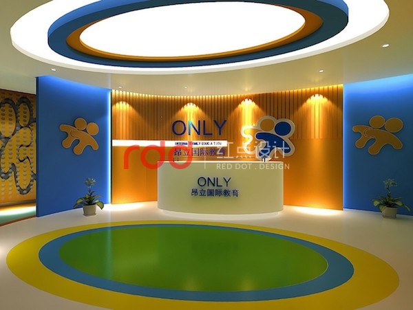 昂立國際教育是以少兒英語教育為主,針對的對象小孩,因此紅點裝飾的設(shè)計師在色彩運用上,以活躍氣氛的顏色為主,通過顏色來調(diào)節(jié)氛圍,帶動小孩子學(xué)習(xí)的積極性,同時利用可愛的圖案,使小孩子喜歡這個空間,更好的融入學(xué)習(xí)中去。