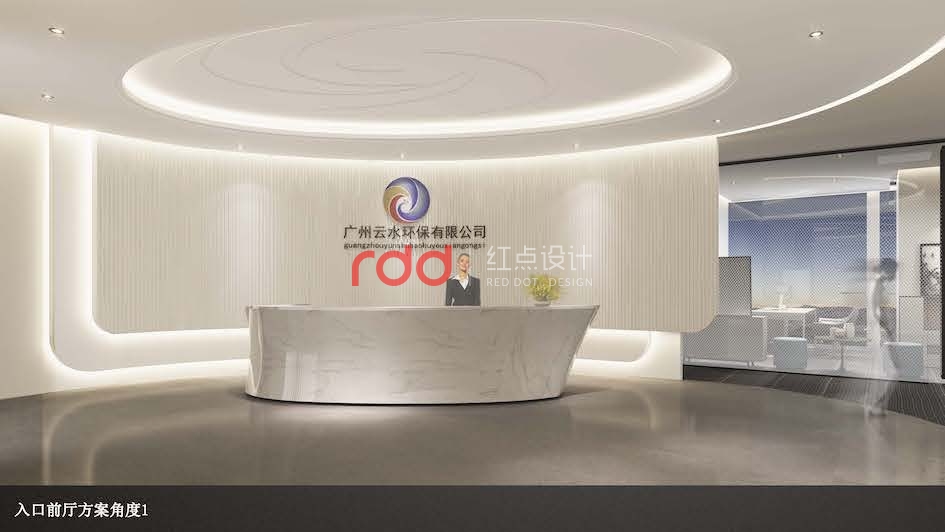 廣州美珊園林有限公司是云南水務(wù)下的子公司,是以“環(huán)?!毙袠I(yè)為主的行業(yè)公司,為了突出該公司環(huán)保的理念,紅點裝飾的設(shè)計師在前廳立面背景及等候區(qū)的背景墻上采用弧形的結(jié)構(gòu),加上大理石的前臺,在平面上看猶如母親的雙手呵護(hù)的珍珠。天花上logo雕刻與背景墻上的logo形成呼應(yīng)。