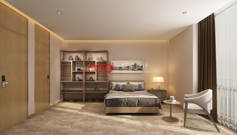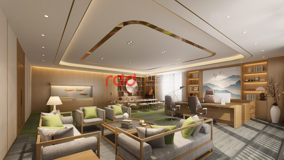根據(jù)客戶的喜好和設(shè)計上對稱平衡的原則,董事長和總經(jīng)理辦公室沿用了前臺大堂的木飾面。