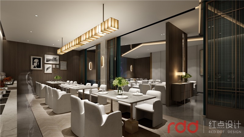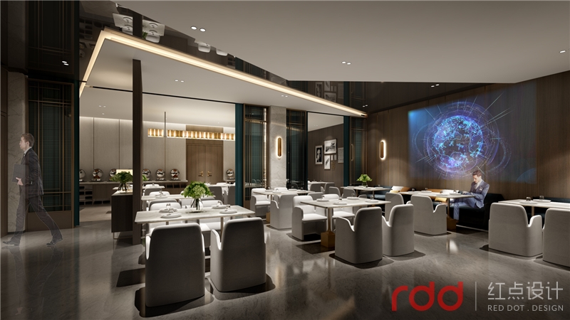 廣州紅點(diǎn)設(shè)計(jì)以人與人和諧相處,人與人沒有隔閡共同工作、生活、就餐在一個(gè)場域?yàn)榈睦砟顬榘馗呔频晷蓍e餐吧設(shè)計(jì)方案