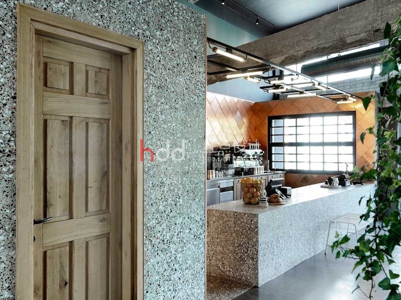 幾何線條和意想不到的元素出現(xiàn)在了這家名為Black Drop的新咖啡廳設(shè)計(jì)里,咖啡廳位于希臘北部城市卡瓦拉的中心位置,這個(gè)咖啡廳空間設(shè)計(jì)融合了城市當(dāng)代風(fēng)格與工業(yè)美學(xué),為顧客提供了一個(gè)新的選擇,以滿足他們的咖啡因欲望。咖啡廳空間里的水磨石地板和一層一層的東西給室內(nèi)帶來了一種古老的、溫馨的元素,而天花板和墻壁上的暴露的水泥梁則增加了前所未有的“工業(yè)”觸感。