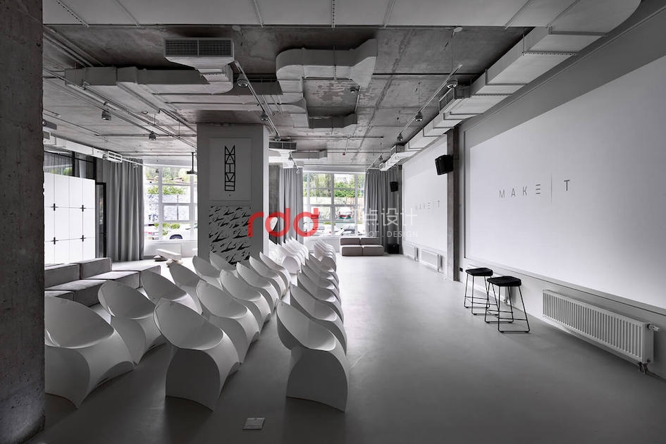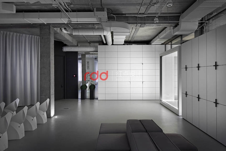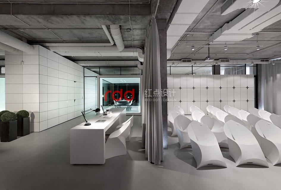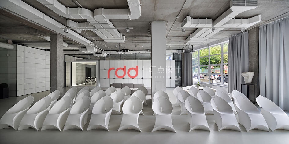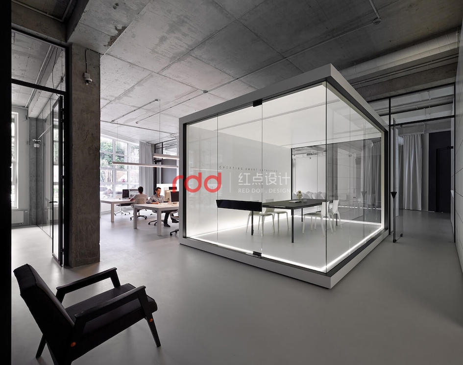 本例辦公室設(shè)計(jì)主要以空白紙張為概念。一張空白紙張,它可以轉(zhuǎn)化為一切:一幅畫,一本好書的頁面,或成為一個(gè)全新的東西。辦公室設(shè)計(jì)的中心是白色的立方會(huì)議室——兩個(gè)區(qū)域之間的通道。有一個(gè)封閉的外殼,以提供隔音。工作場(chǎng)所被區(qū)分為兩個(gè)白色的大島嶼,布局格外舒適。