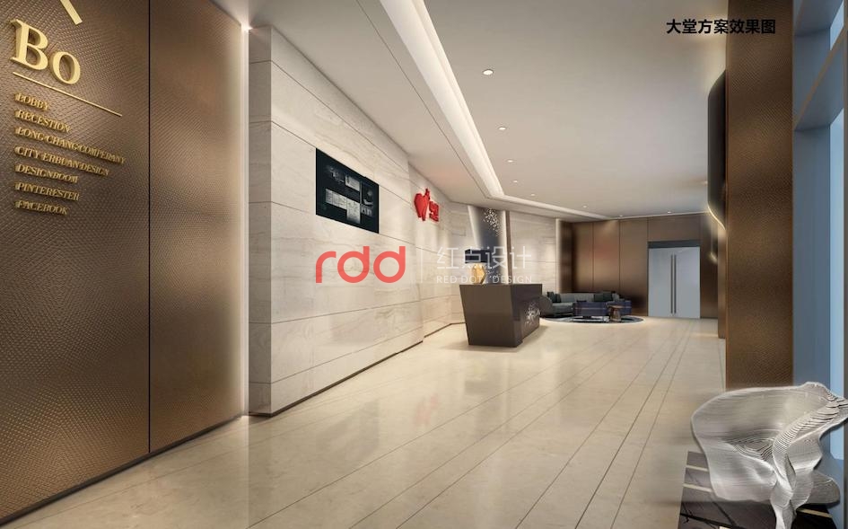 本項目是三層樓的辦公空間。步入大堂,厚重的金屬感及強烈的線條感席卷而來。加上金屬與石材質(zhì)感的對比,背景墻及前臺鏤空的設(shè)計在燈光的照射下光影效果明顯。