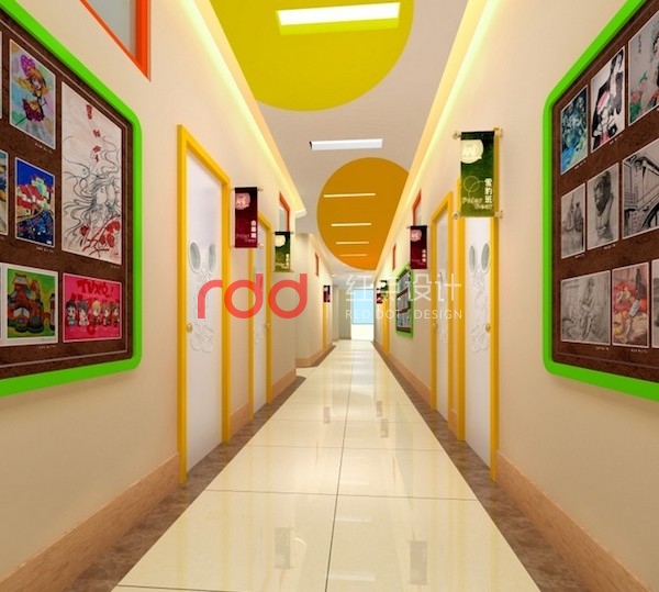 昂立國際教育是以少兒英語教育為主,針對的對象小孩,因此紅點裝飾的設(shè)計師在色彩運用上,以活躍氣氛的顏色為主,通過顏色來調(diào)節(jié)氛圍,帶動小孩子學(xué)習(xí)的積極性,同時利用可愛的圖案,使小孩子喜歡這個空間,更好的融入學(xué)習(xí)中去。