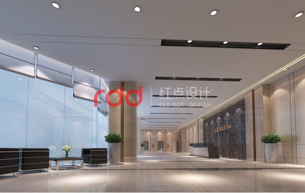 該項目位于佛山南海區(qū)的商業(yè)區(qū),是比較大型的銀行辦公綜合體。以現(xiàn)代簡約的設計風格為主,融入少量中式元素。大堂區(qū)域,背景墻是灰色的大理石,兩邊是木飾面的墻身,鑲嵌金色的金屬條,看起來更精致,空間更高挑。