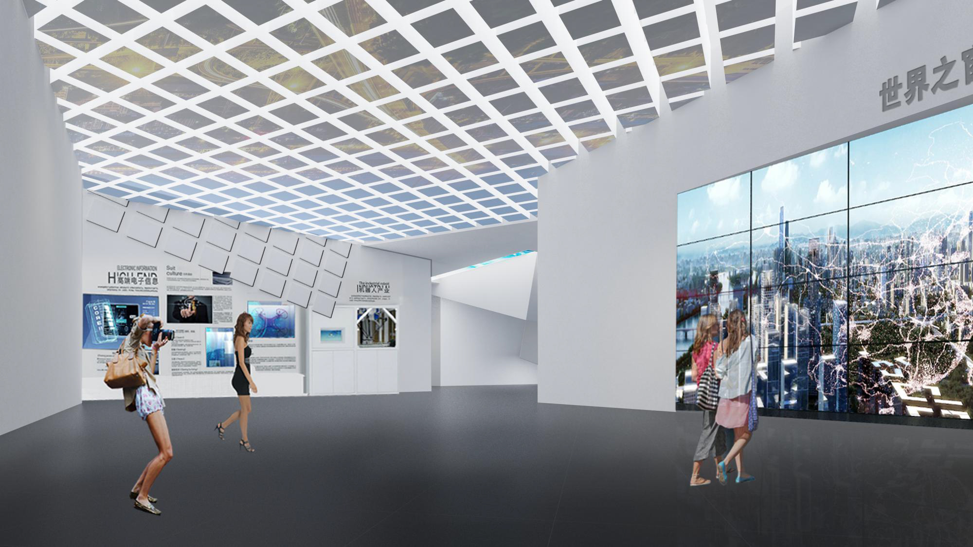充分考慮建筑現(xiàn)有條件,同時結(jié)合內(nèi)容主題特點,使形式設(shè)計不是強加給建筑,而是建筑的合理延續(xù),本展覽內(nèi)容是科技與未來主題特征,所以設(shè)計追求超時空已經(jīng),利用科技 手段如大型LED環(huán)形屏幕演示主題內(nèi)容。觀眾進(jìn)入展廳猶如進(jìn)入一個未來時空,在這個時空之中我們可以看到未來科技的應(yīng)用,未來新區(qū)的發(fā)展,未來世界的樣子,一個未來的理 想之城以科技手段幻化成為現(xiàn)實。